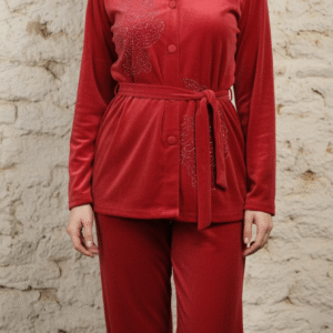 Velour Sweatshirt and Paints Set. Experience ultimate comfort with this luxuriously soft velour sweatshirt and paints set, designed to keep you warm and stylish during cool weather and winter season. Sweatshirt: Crafted wit raglan full- length sleeves featuring cuffed hems for a relaxed yet secure fit. Pyjama: Designed with an elacticated waistband and drawcord for adjustable comfort, along with functional side pockets for added convenience. Made from premium velour fabric, this set offers a plush, velvety texture and a cozy feel, perfect for lounging or casual wear.