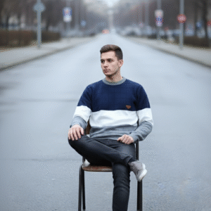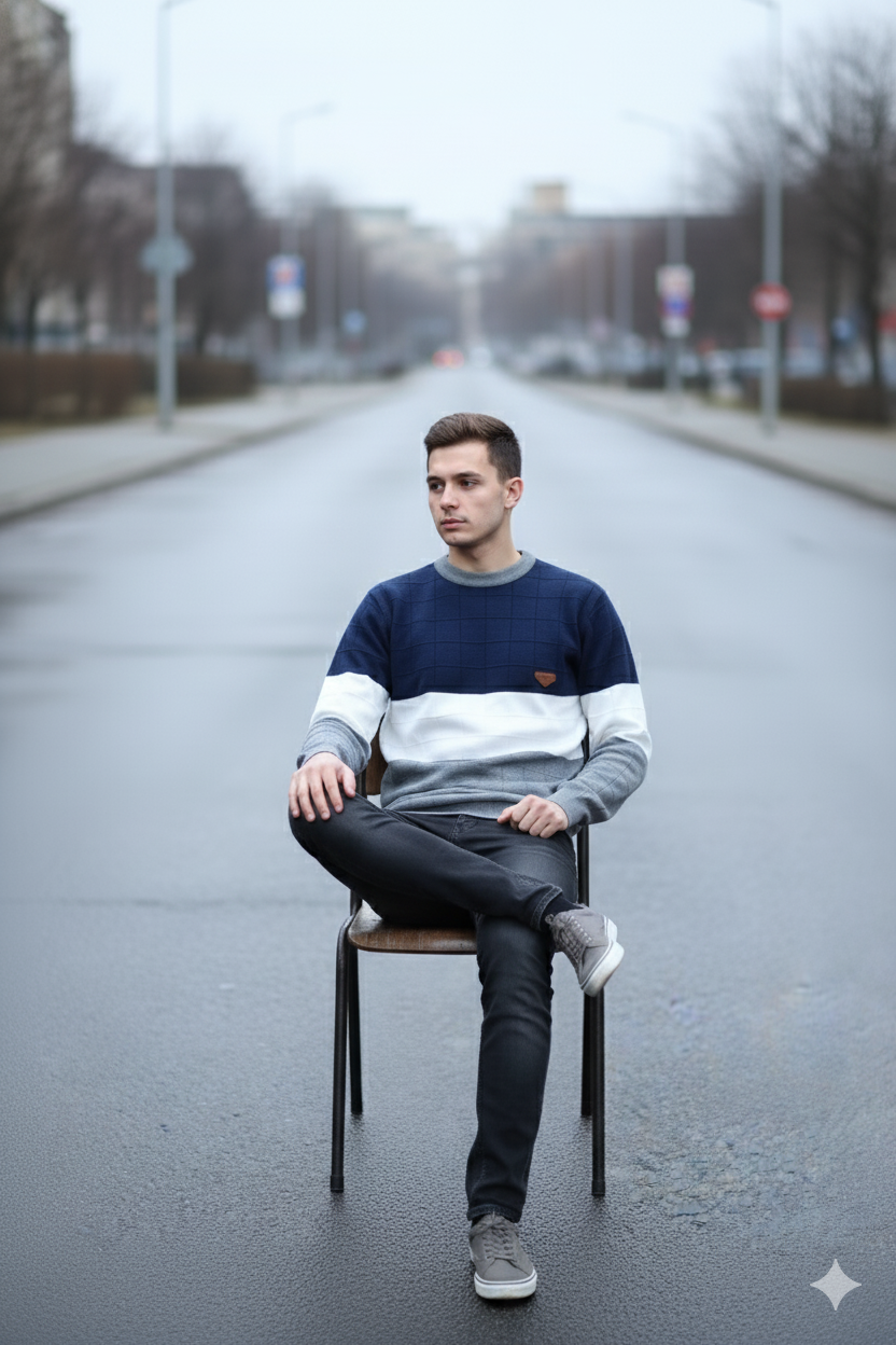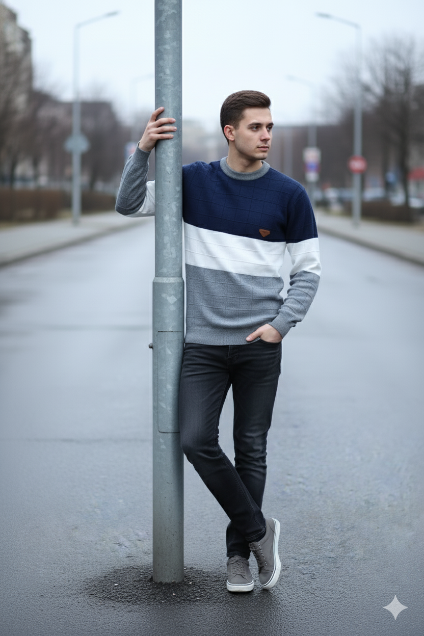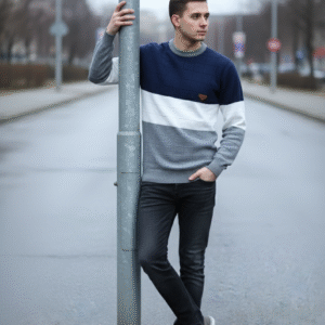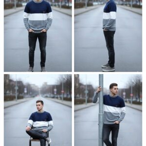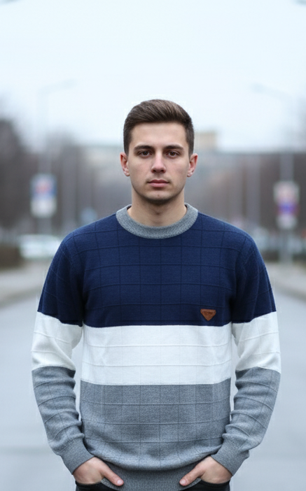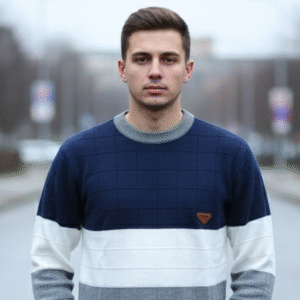 Name: GLAUCUS Men’s Casual Striped Sweater, Dual Tone Knit Pattern, Long Sleeve Crew Neck Pullover