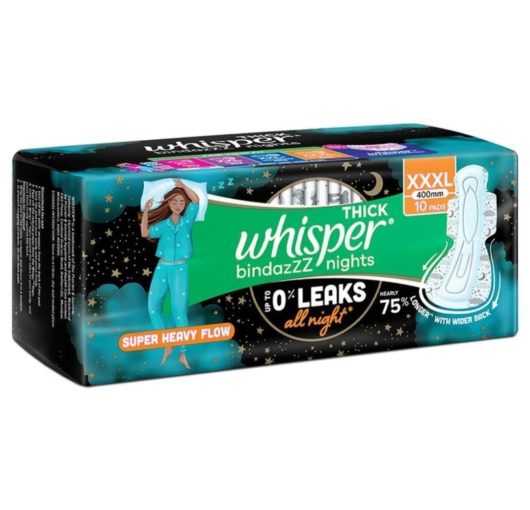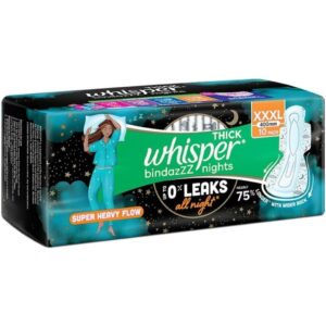 Be the first to review “Whisper Thick Bindazzz Nights Sanitary Napkin with Wings (XXXL) 10 pads”