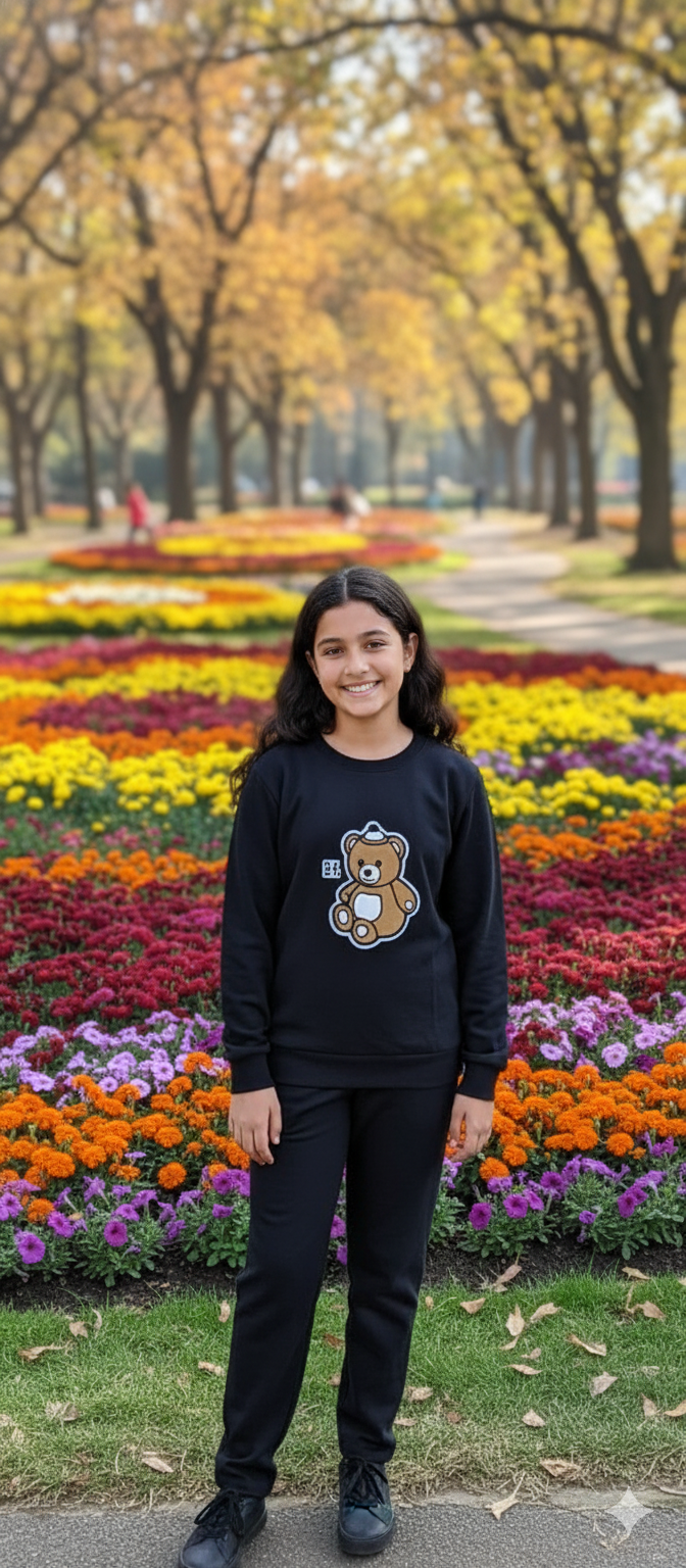 Black winter teddy suit for girls and it was very comfortable