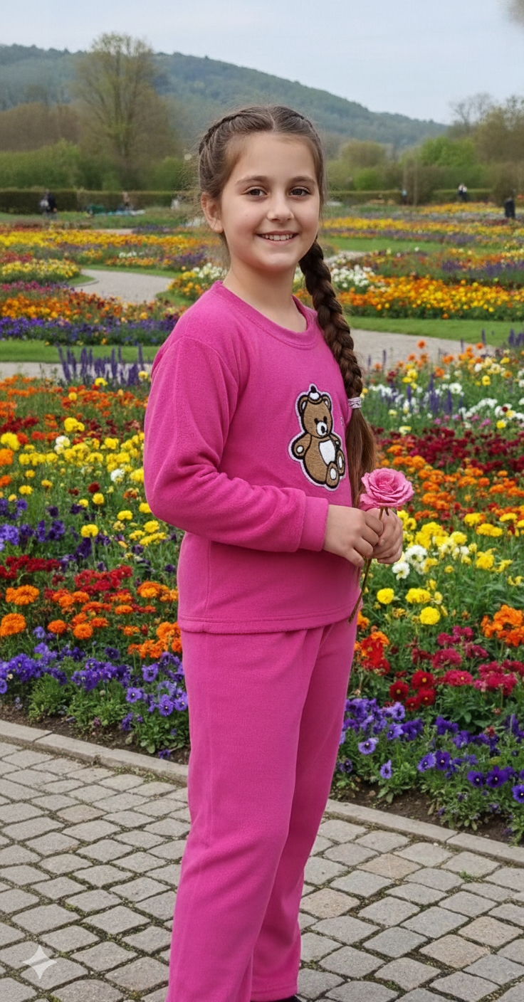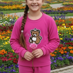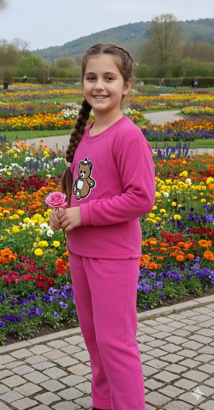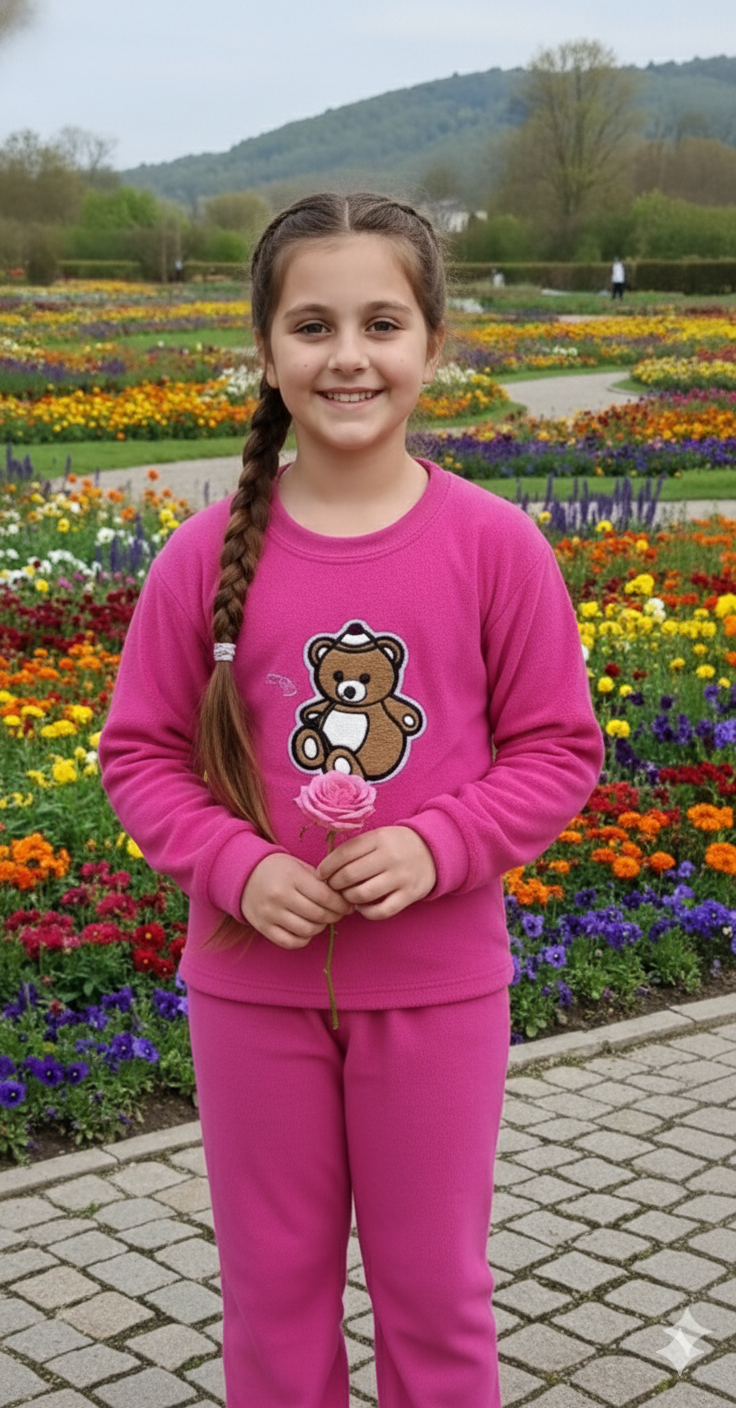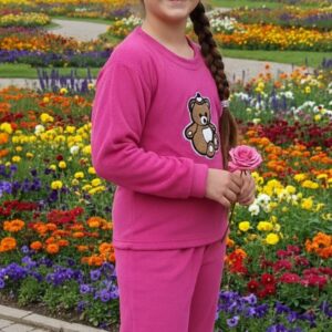 Pink colour teddy winter suit for girls