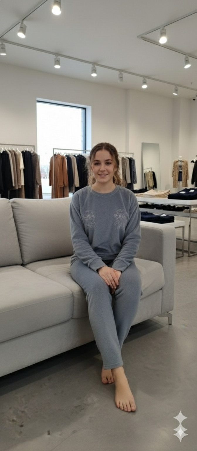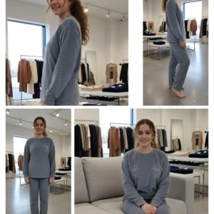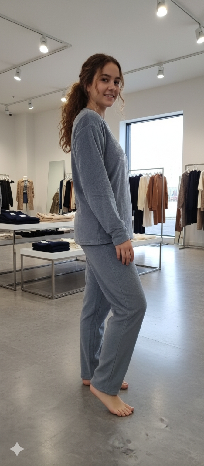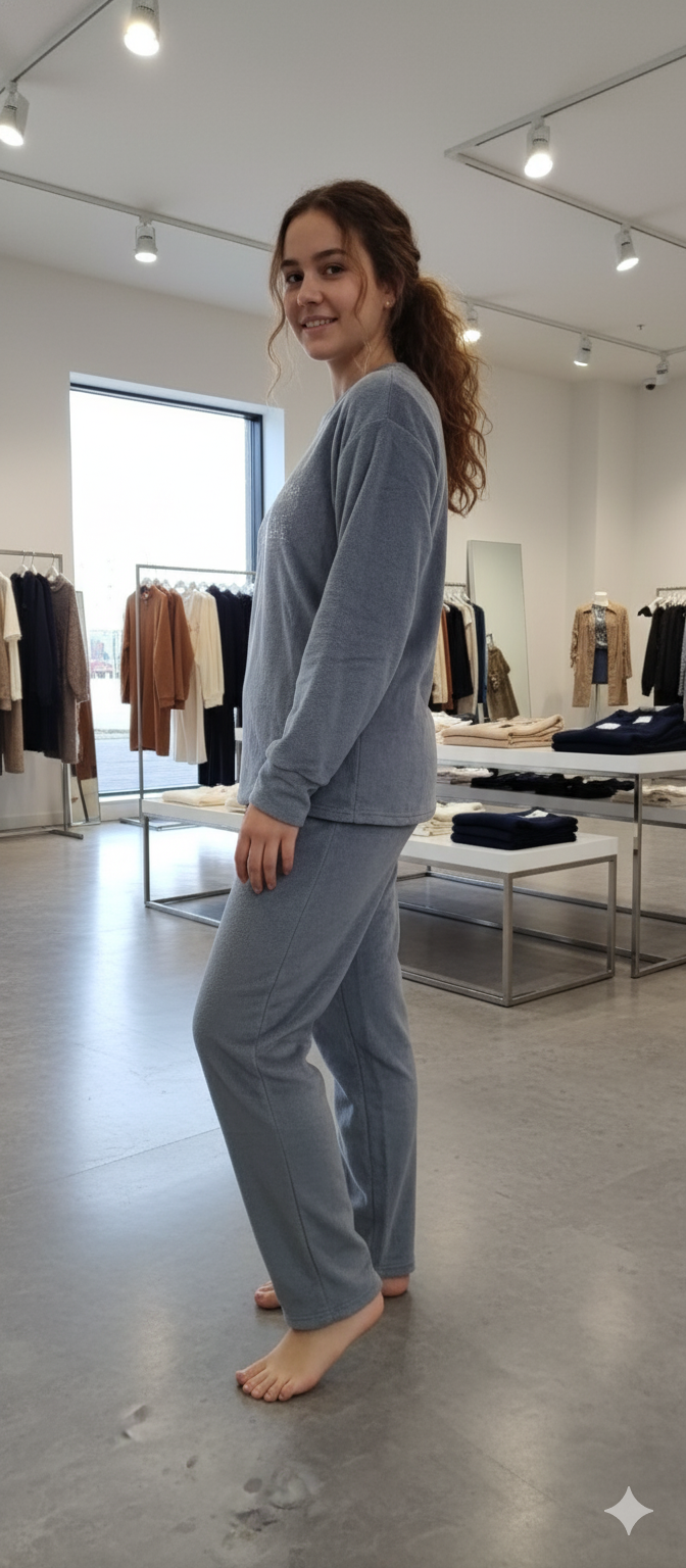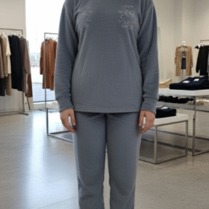 Woman gray colour wool blend solid night suit